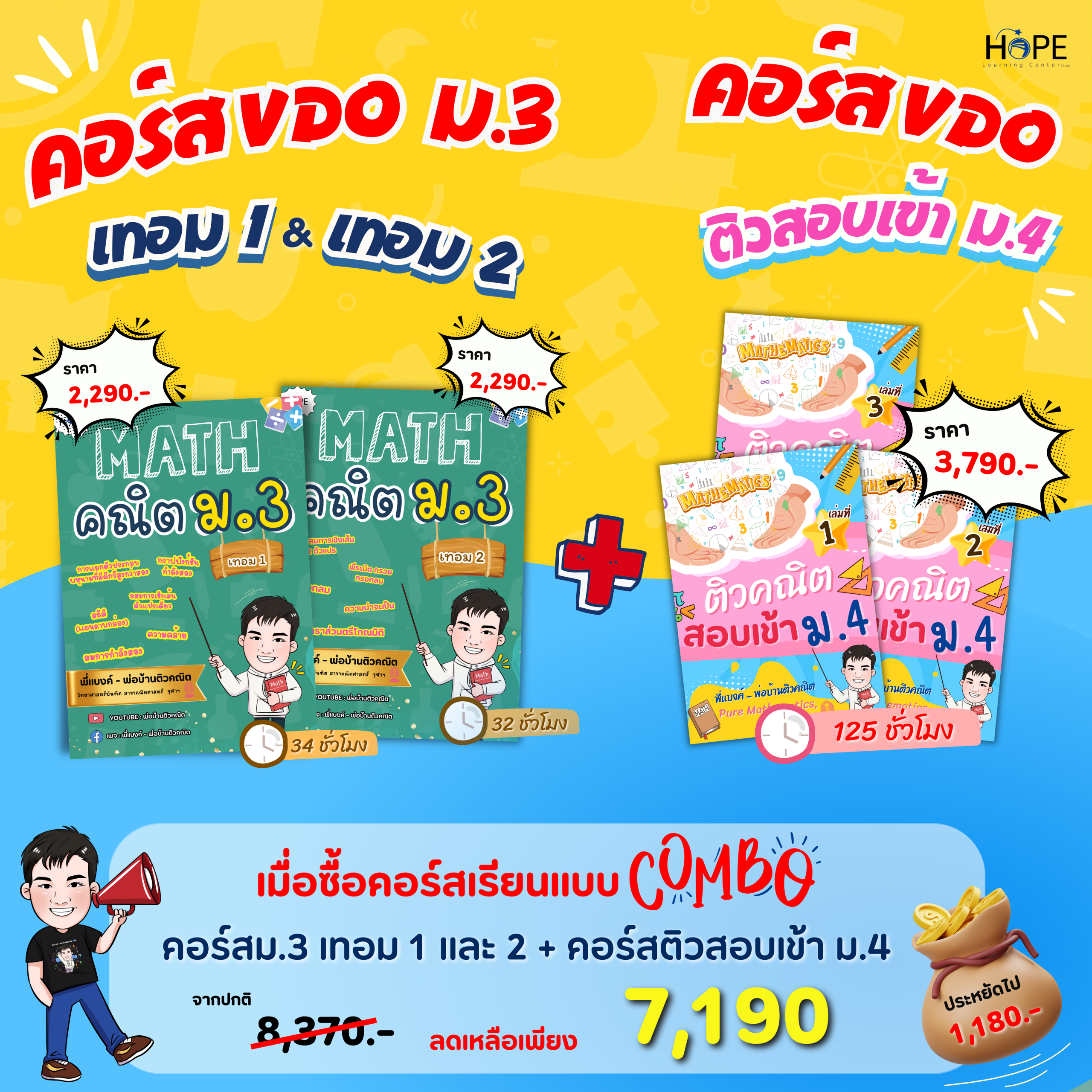 คอร์สนี้ออกแบบมาเพื่อให้น้อง ๆ เข้าใจเนื้อหาคณิต ม.3 เทอม 1 แบบเป็นระบบปูพื้นฐานให้แน่น พร้อมฝึกคิด วิเคราะห์ และแก้โจทย์ได้จริง