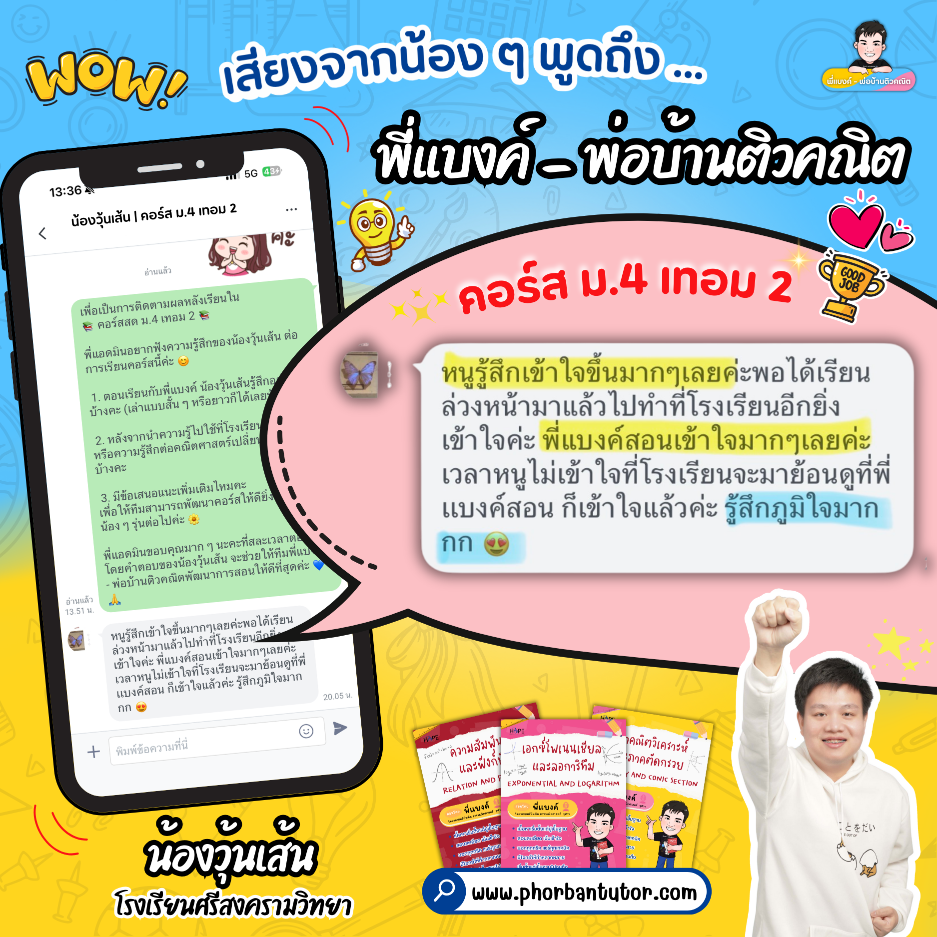 Review คอร์สคณิต ม.4 เทอม 2 พร้อมลุยคณิตกับพี่แบงค์ คว้าเกรด 4 ทุกสนามสอบ