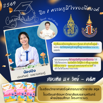 ได้สิทธิ์เข้ากลุ่ม Exclusive อัปเดตข้อมูลการศึกษาเพื่อไม่ให้ พลาดข่าวสารการเตรียมสอบ
